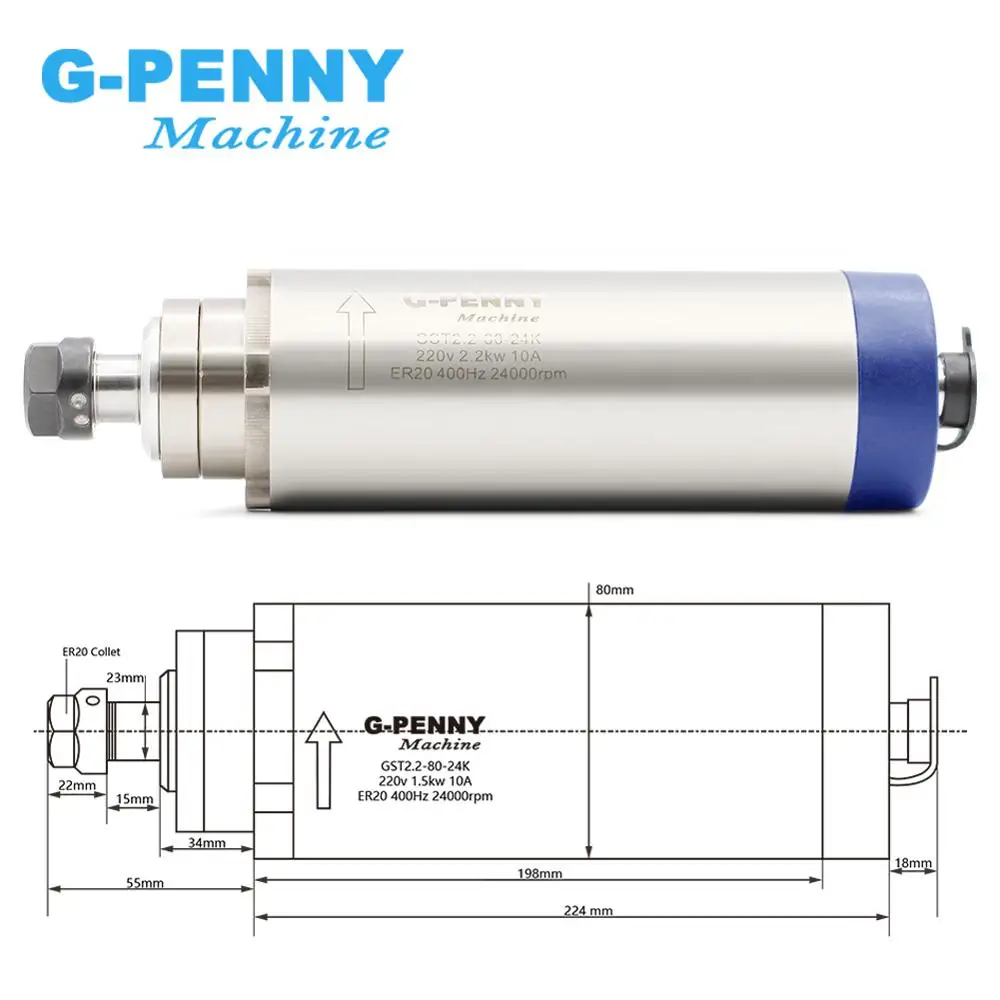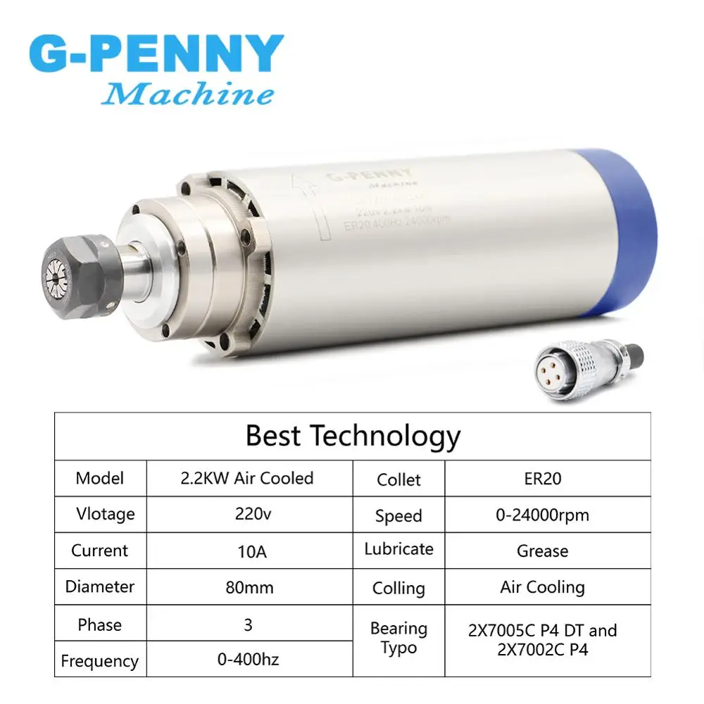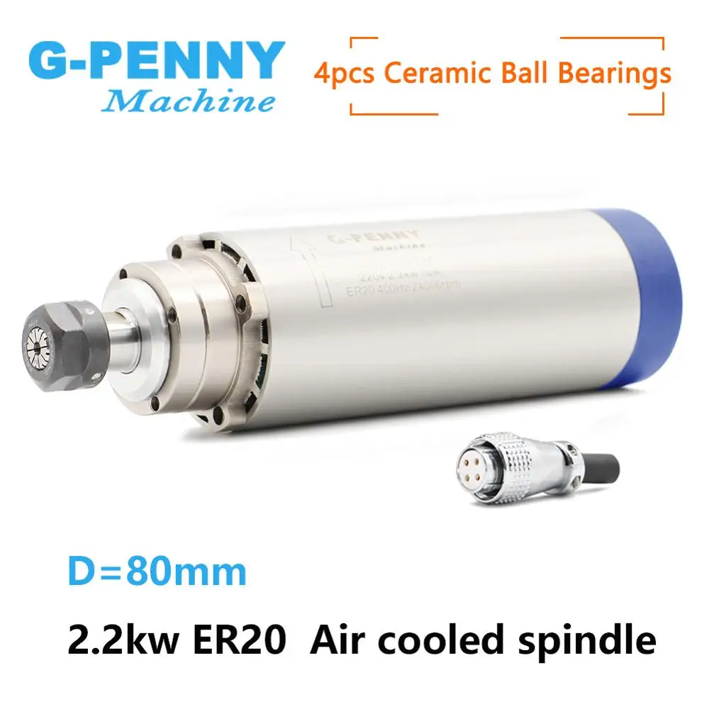 . (14% Off) Comprar Motor de husillo de fresado CNC 2,2 kw ER20 220v motor de husillo de refrigeración de aire 2.2kw refrigerado por aire 80x224mm 4 rodamientos para grabado CNC Online Baratos.