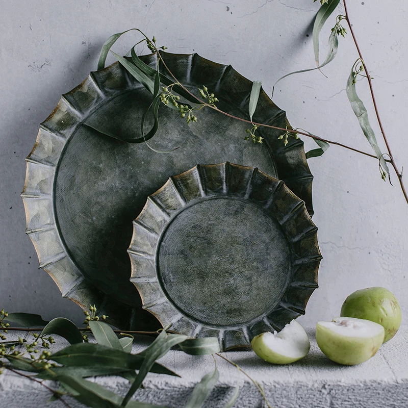 . (27% Off) Comprar Bandeja de Metal antiguo artesanal con borde Floral único bandeja de hierro redondo con Ribboned bandeja Retro rústica para la boda de la Iglesia en casa Online Baratos.