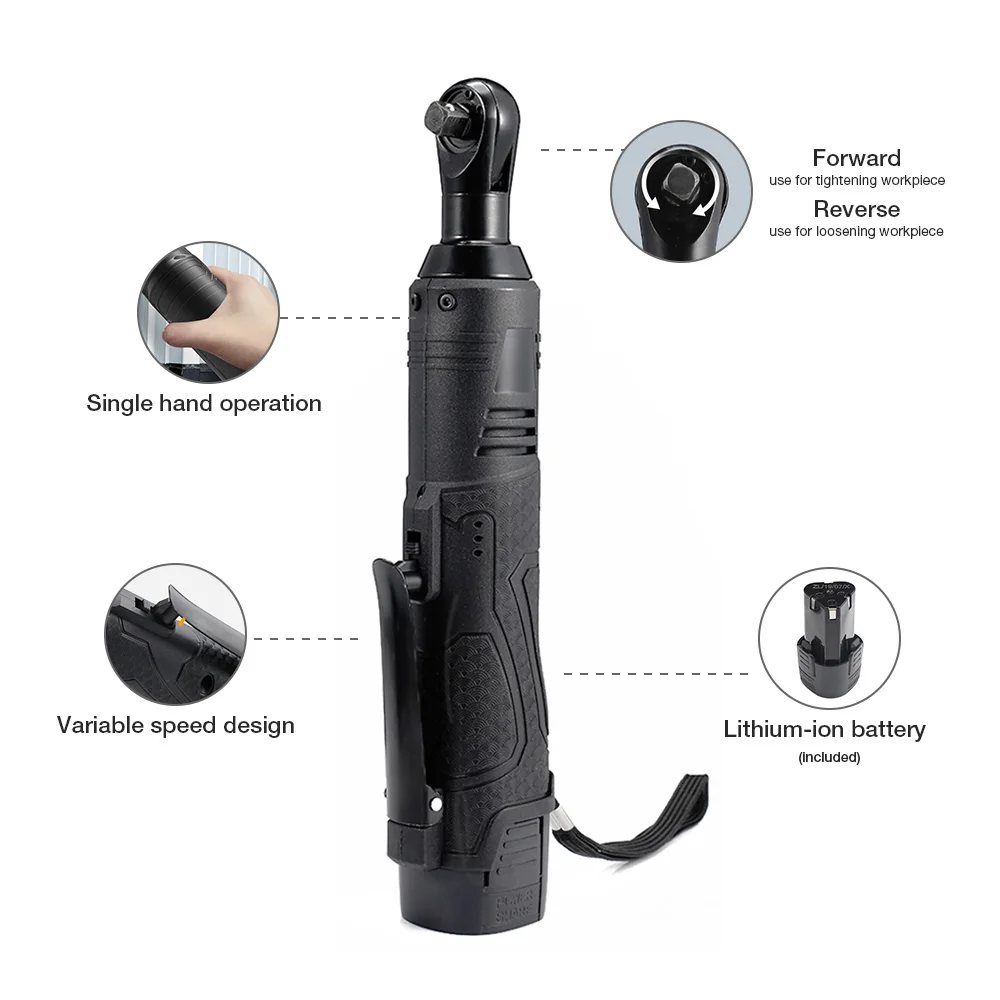 Special Offer 3 8 2 batería de iones de litio Llave de trinquete eléctrico recargable llave de ángulo recto inalámbrica eléctrica para coche Discount 30% Today!