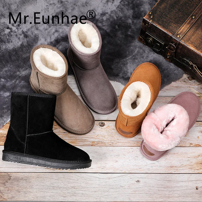 . (38% Off) Comprar Hombres Mujeres pareja invierno botas de nieve Australia cuero genuino tobillo botas de invierno cálido botas de caucho para mujeres zapatos de gran tamaño Online Baratos.