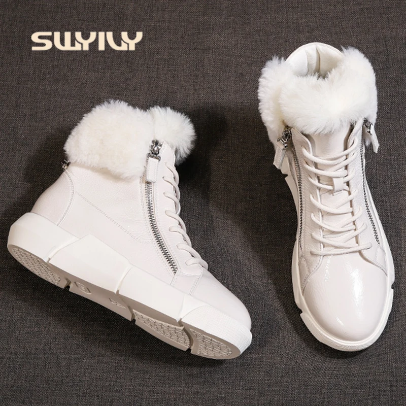 Special Offer Botas de tobillo de nieve de invierno de SWYIVY para mujeres a prueba de agua 2019 nuevas botas de tobillo de nieve de piel para mujer Discount 39% Today!