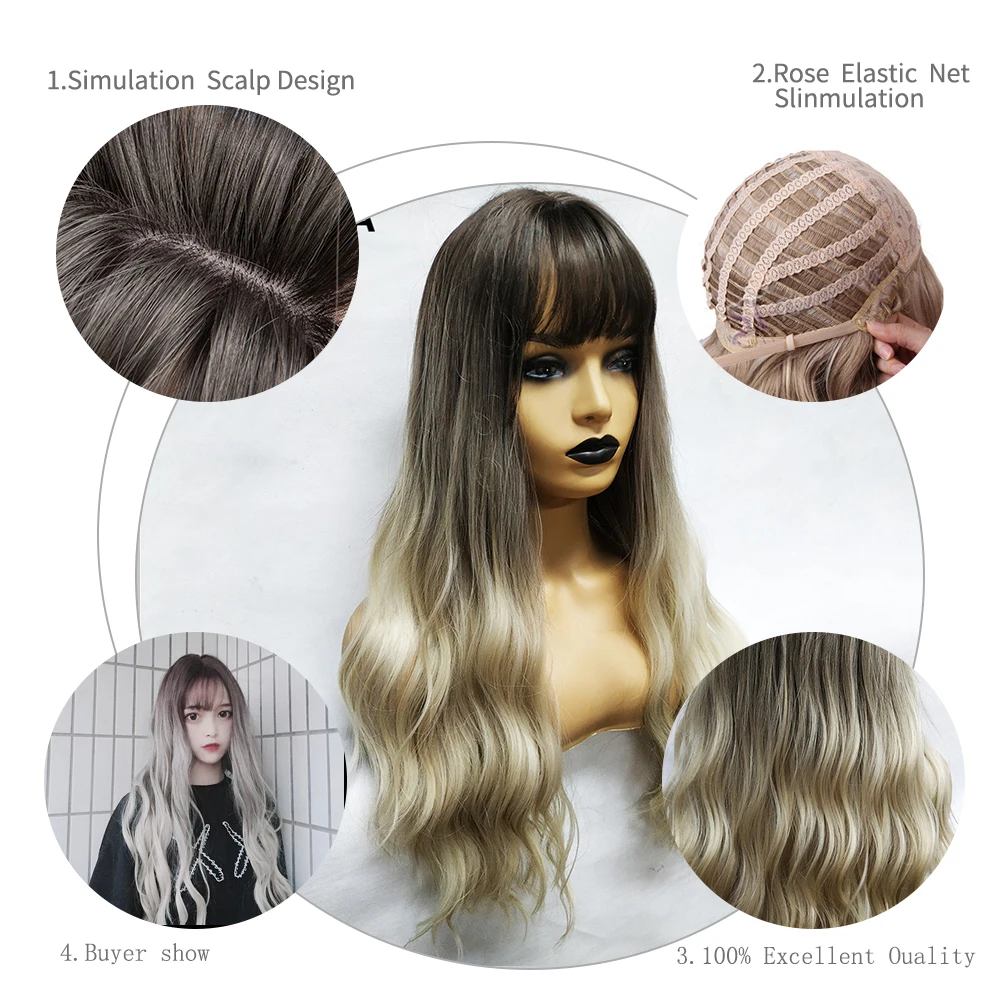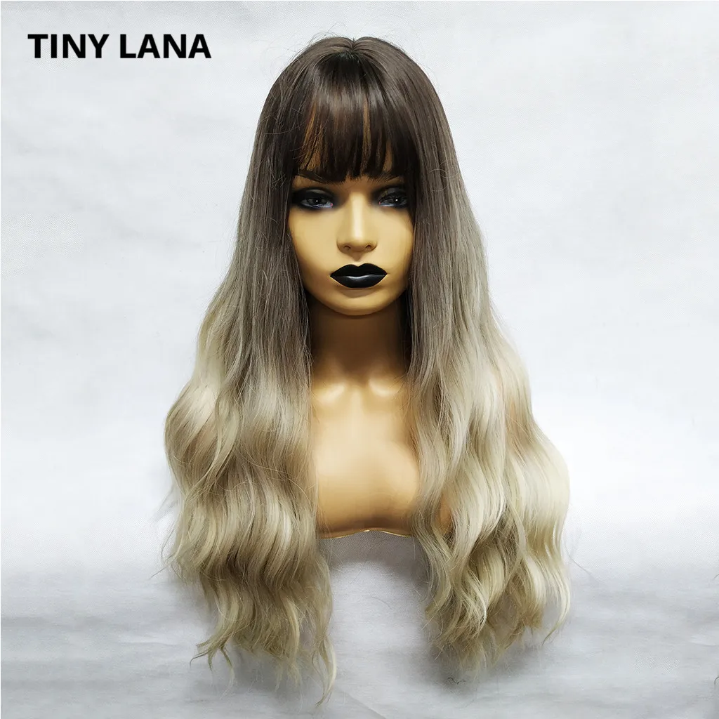 Special Offer TINY LANA 26 \"peluca larga de oro marrón de las mujeres pelucas con flequillo resistente al calor sintético rizado pelucas para las mujeres afro americanas Discount 40% Today!