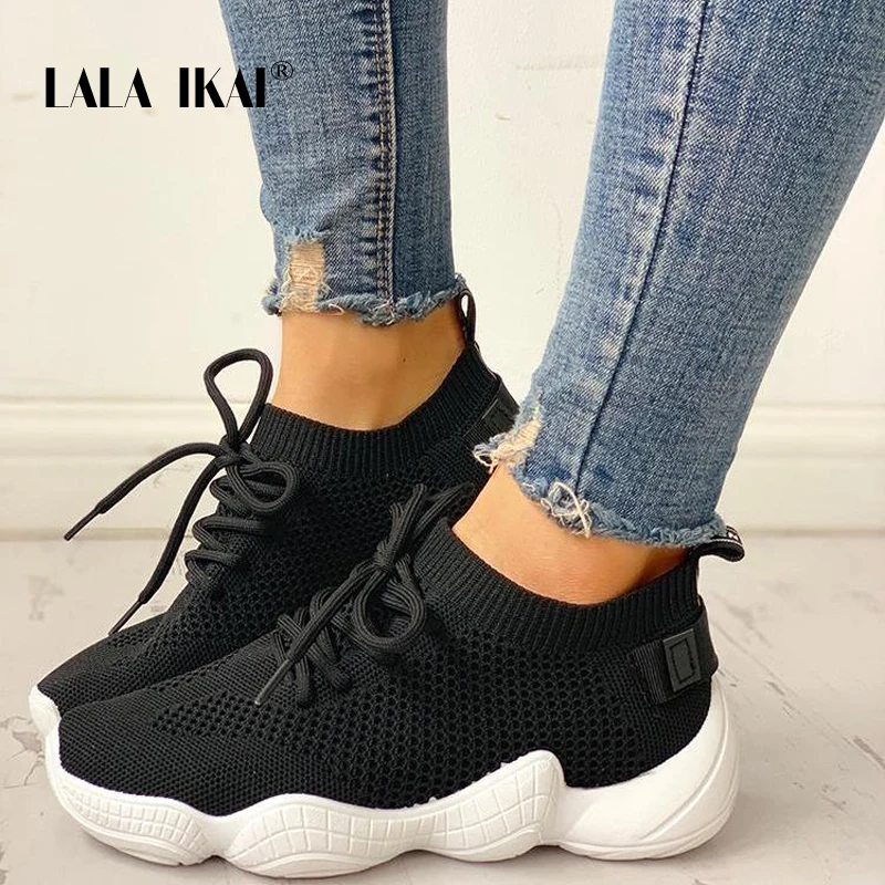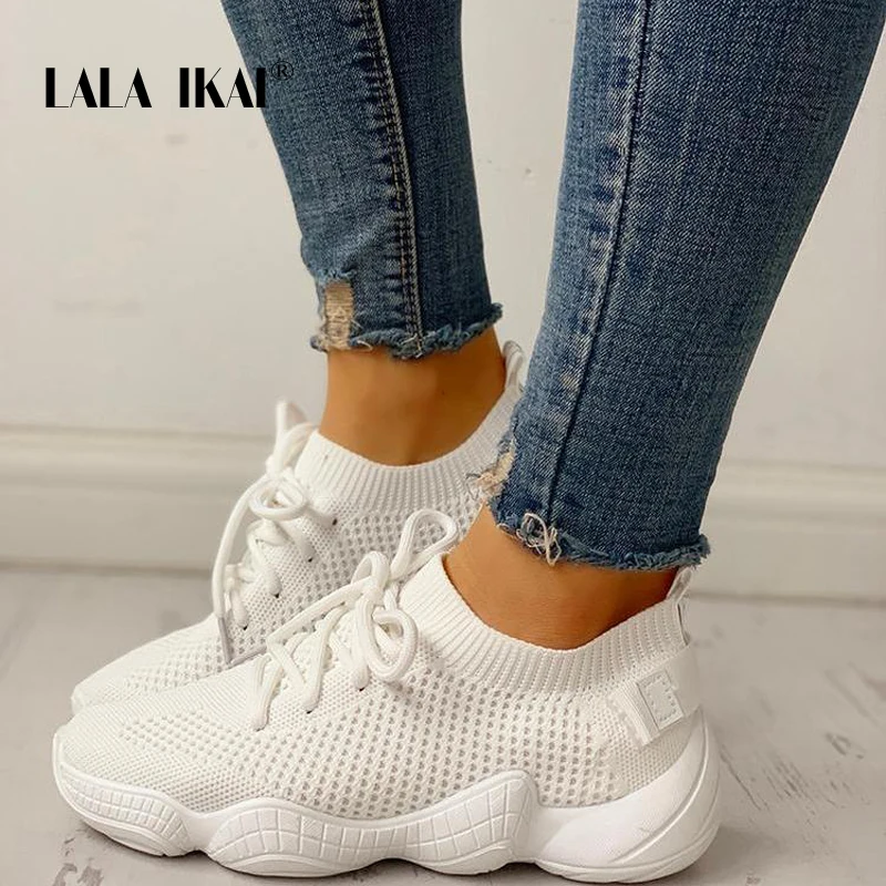 Special Offer Zapatillas LALA IKAI para mujer zapatos de malla informales transpirables con cordones zapatos vulcanizables para mujer zapatos Tenis Rosa Suave 014A3796 4 Discount 40% Today!