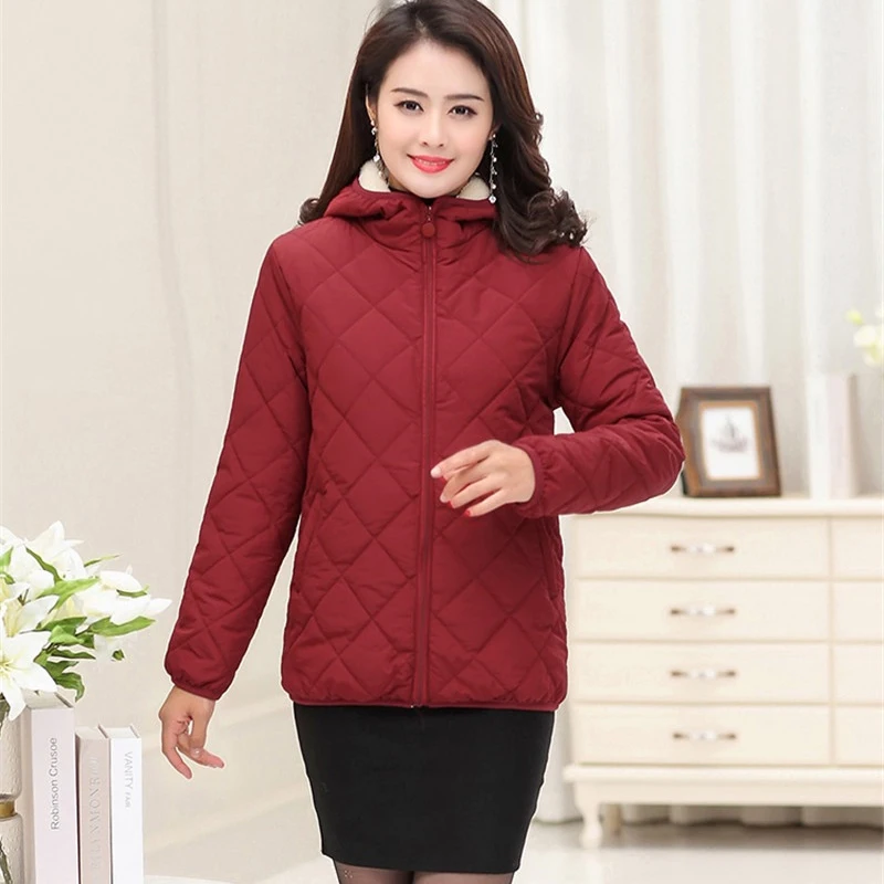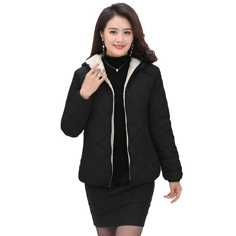 Special Offer Otoño Invierno Chaqueta corta Mujer abrigo de algodón flocado grueso cálido Parkas mediana edad femenina chaquetas de algodón con capucha de talla grande H623 Discount 52% Today!