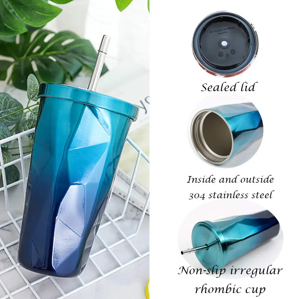 Special Offer Acero inoxidable tazas de café vaso doble pared degradado termo taza con paja agua potable frascos térmicos para viajes 500ml Discount 30% Today!