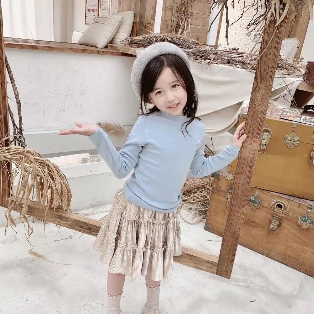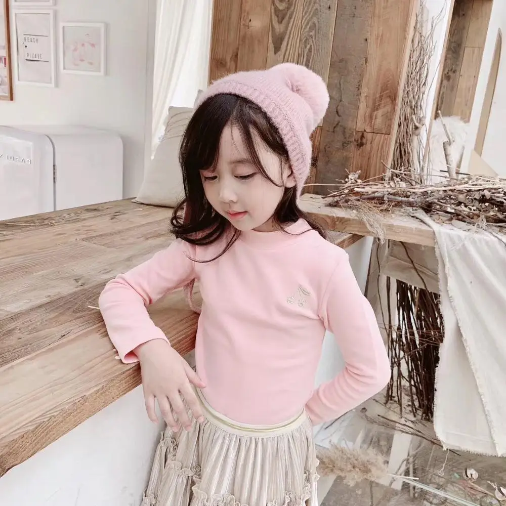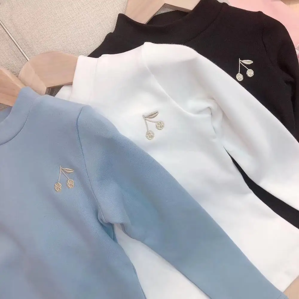 Special Offer Tops de manga larga de algodón bordado patrón de cereza sólido rosa azul blanco negro color bebé niñas cuello alto tops Discount 10% Today!