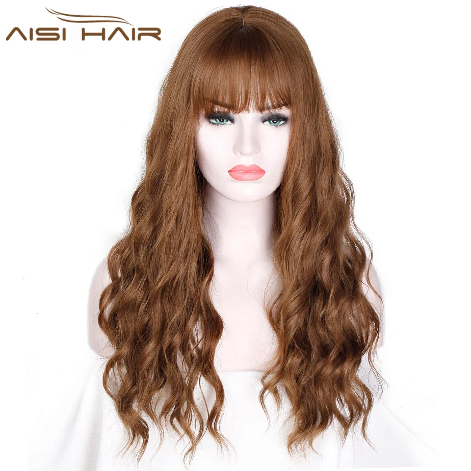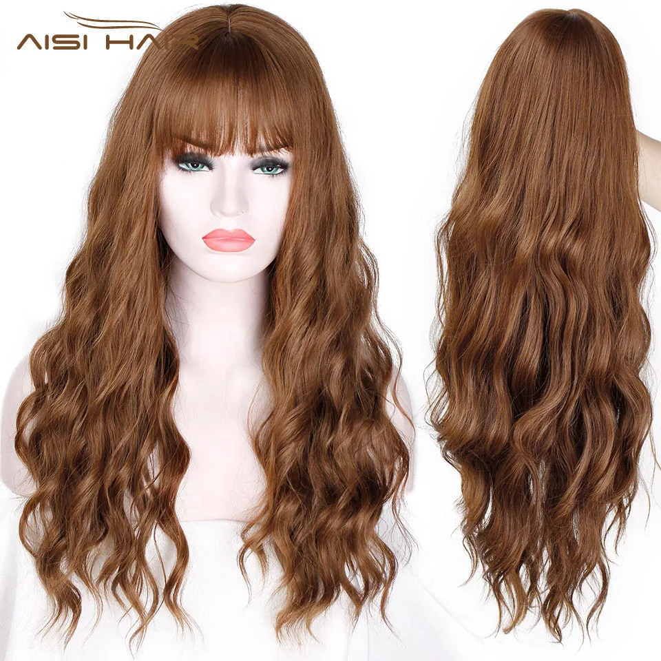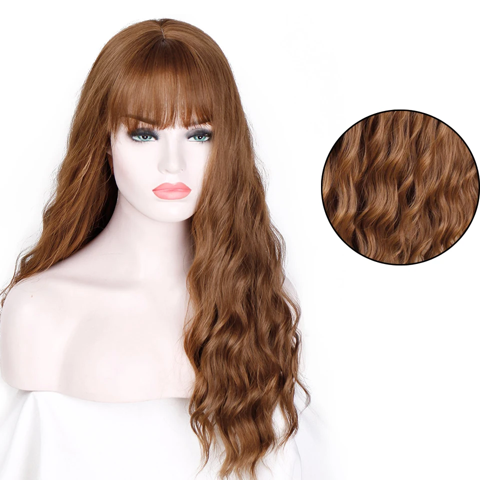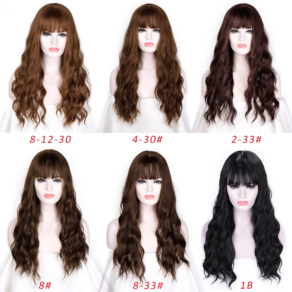 Special Offer Pelucas de mujer marrones mezcladas largas con flequillo pelucas sintéticas resistentes al calor para mujeres afro americanas Discount 40% Today!