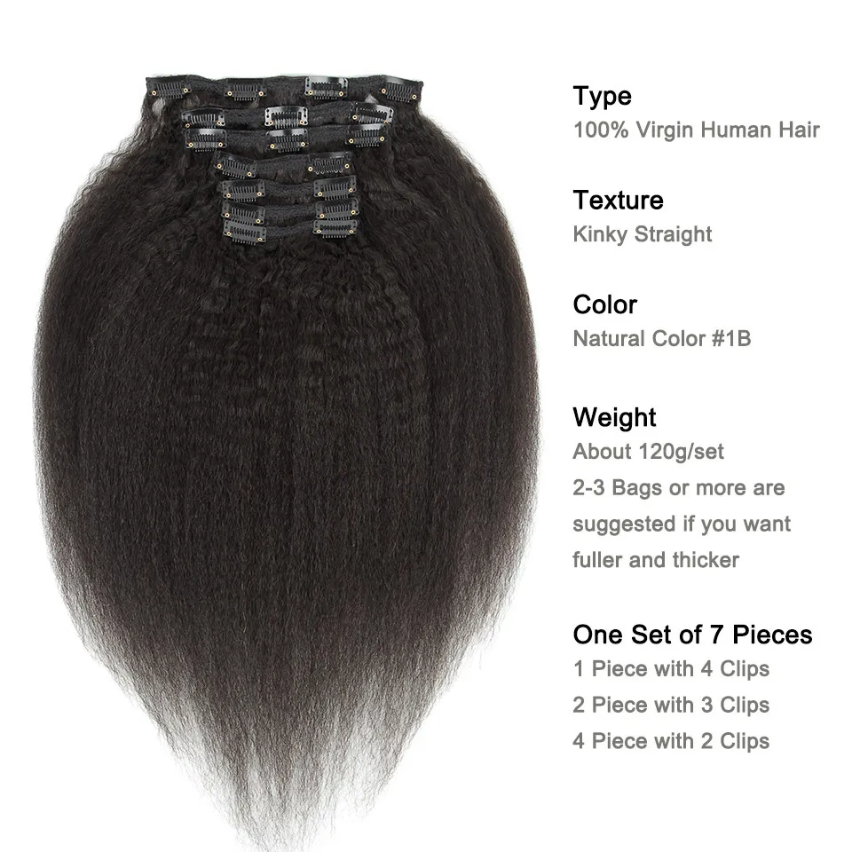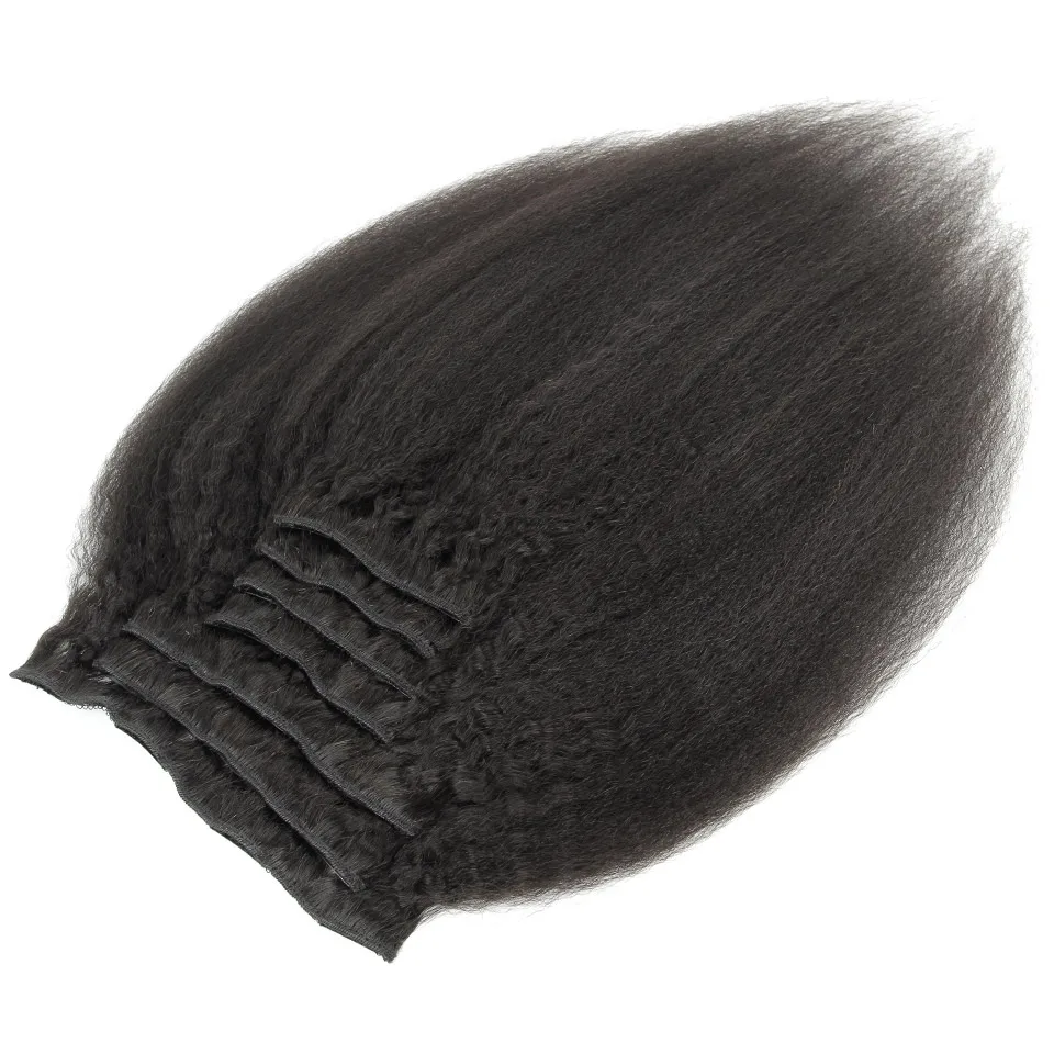Special Offer Yonne rizado Clip recto en extensiones de cabello humano pelo virgen brasileño 7 unids set 120g Color Natural Discount 45% Today!