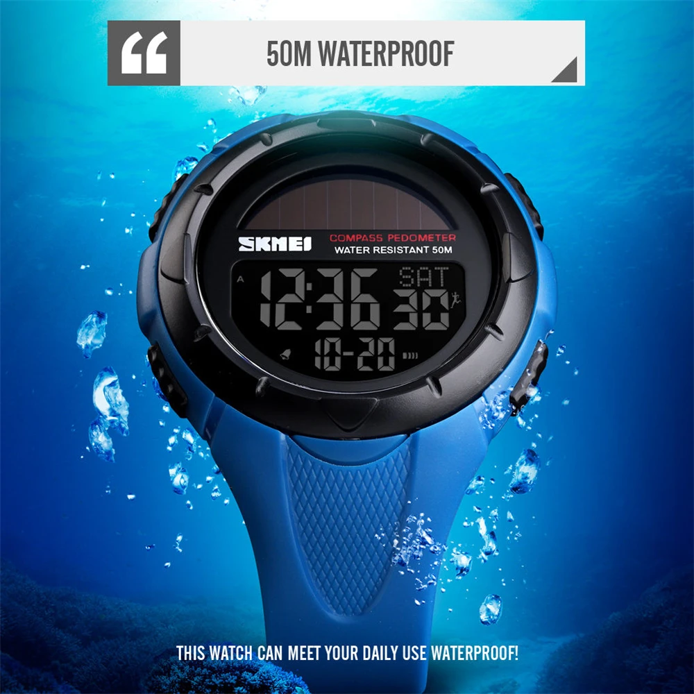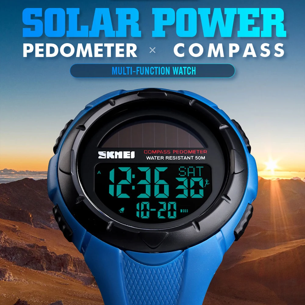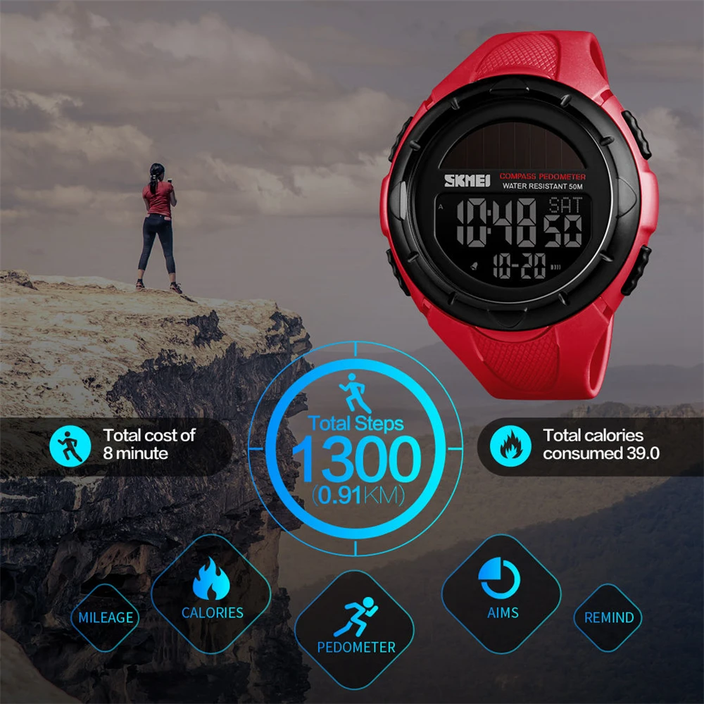 Special Offer Reloj inteligente SKMEI relojes digitales para hombre podómetro de energía Solar impermeable de energía Solar reloj deportivo para hombre reloj Masculino 1488 Discount 49% Today!
