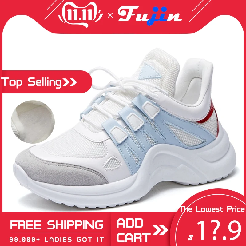 Special Offer Zapatillas de deporte de Fujin para mujer 2019 zapatos casuales de malla transpirable zapatillas de moda para mujer con cordones plataforma de zapato vulcanizado para mujer de alto ocio Discount 58% Today!