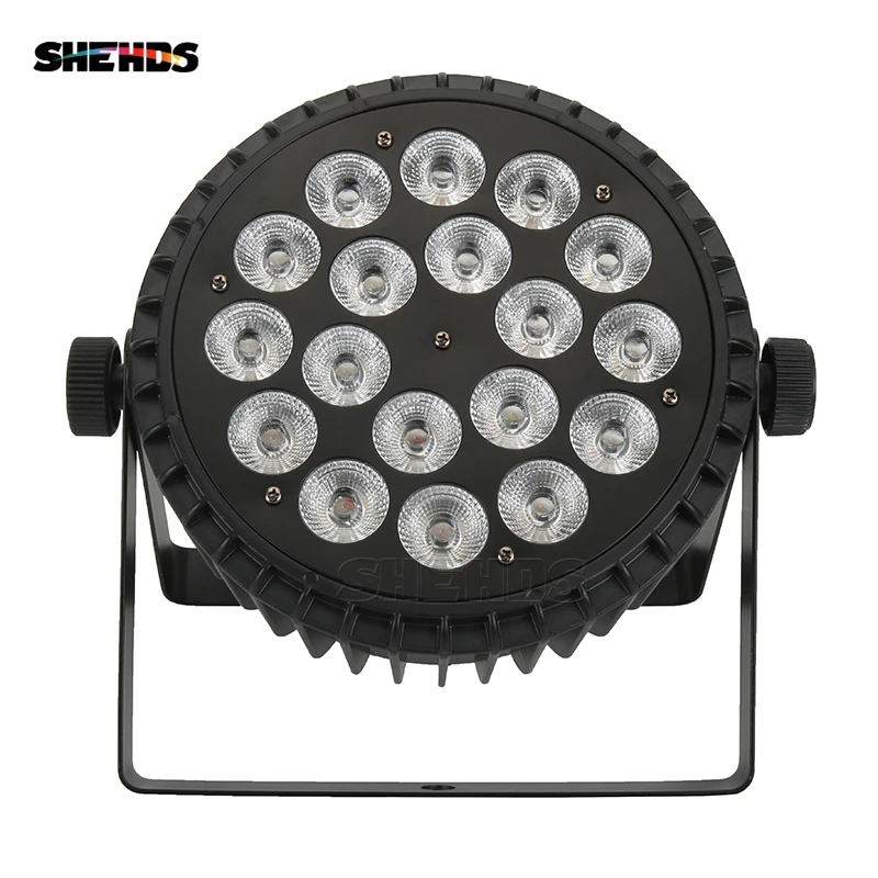 Special Offer SHEHDS aleación de aluminio LED plano Par 18x18W RGBWA luz UV inalámbrico DMX 512 iluminación de escenario para DJ Disco fiesta proyector club nocturno Discount 7% Today!