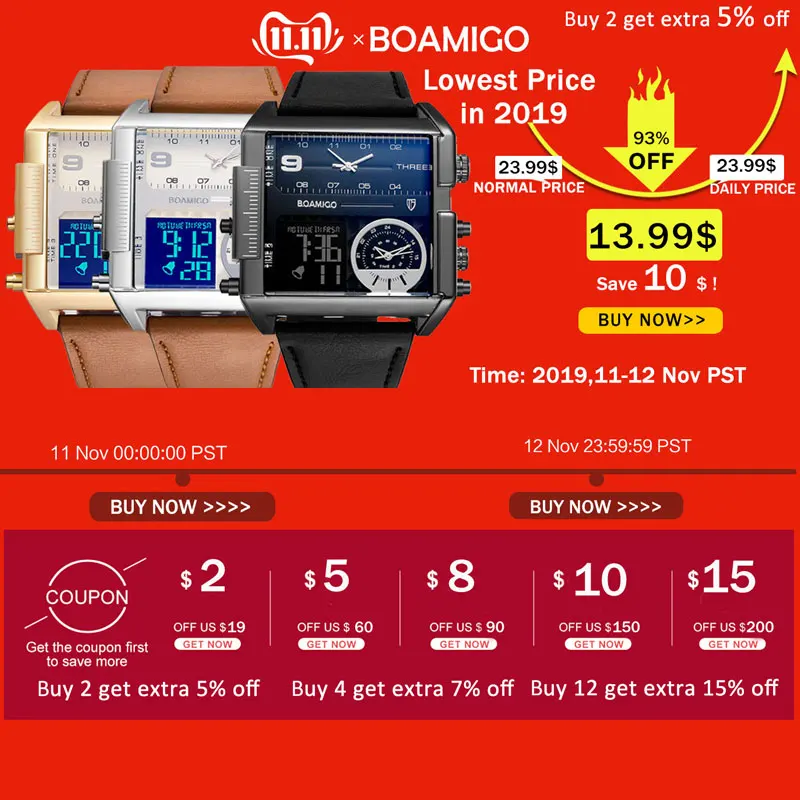 Special Offer BOAMIGO marca de lujo superior Me relojes deportivos Hombre militar cronógrafo reloj digital cuero cuarzo relojes de pulsera reloj Masculino Discount 90% Today!