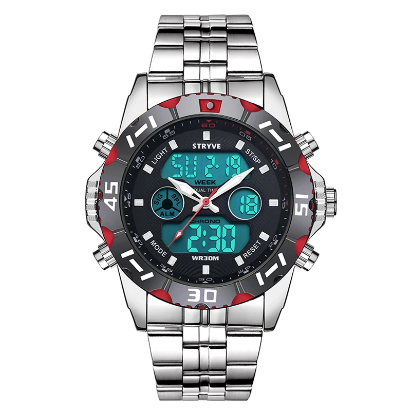 Special Offer Reloj deportivo militar resistente al agua marca Stryve 8011 Relojes para hombre reloj Digital de cuarzo de acero inoxidable con doble pantalla montre homme Discount 0% Today!