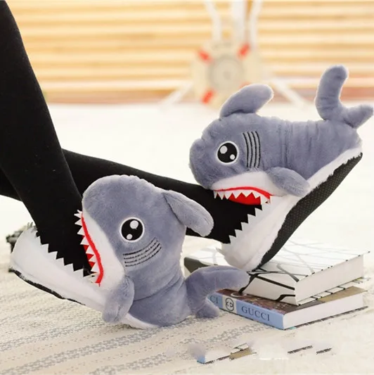 Special Offer Invierno Super Animal divertido zapatos para hombres y mujeres cálido suave Fondo casa y casa interior piso tiburón forma peludo zapatillas Shallows99 Discount 10% Today!