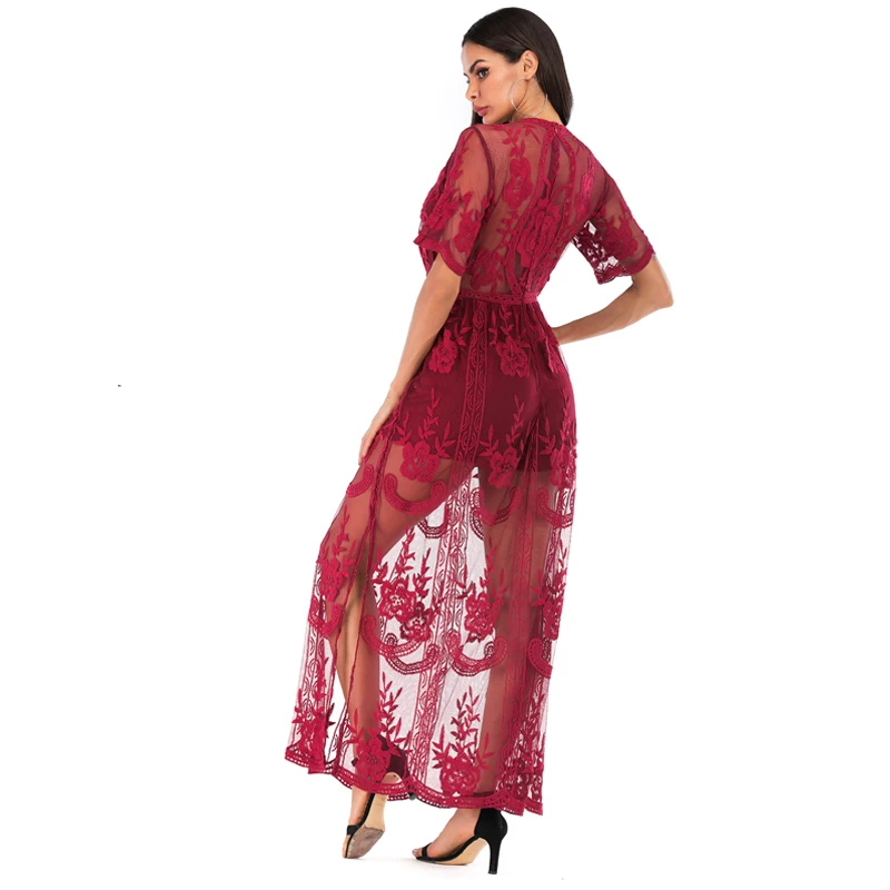 Special Offer SESOAF mujeres Sexy de manga corta Vestido largo cuello en V profundo de encaje mameluco Venta caliente Vestido en Amazon Maxi Vestido de boda Discount 20% Today!