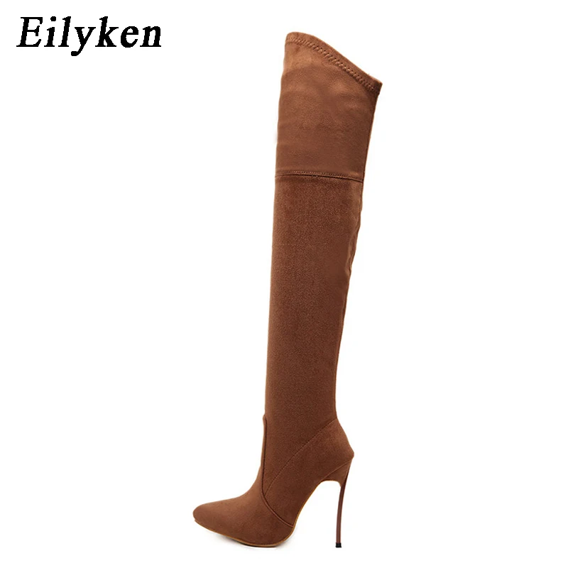 Special Offer Eilyken 2019 Otoño Invierno botas de mujer estiramiento Delgado muslo alto botas de moda sobre la rodilla zapatos de tacón alto Mujer zafiro Discount 32% Today!