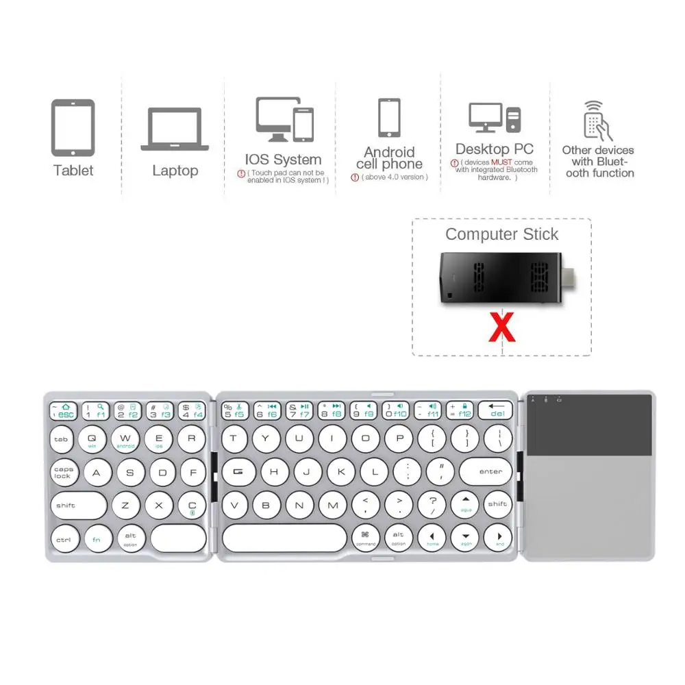 Special Offer AVATTO nuevo B033 portátil Bluetooth plegable Mini teclado, plegable BT teclado táctil inalámbrico para IOS Android ventana ipad Tablet Discount 40% Today!
