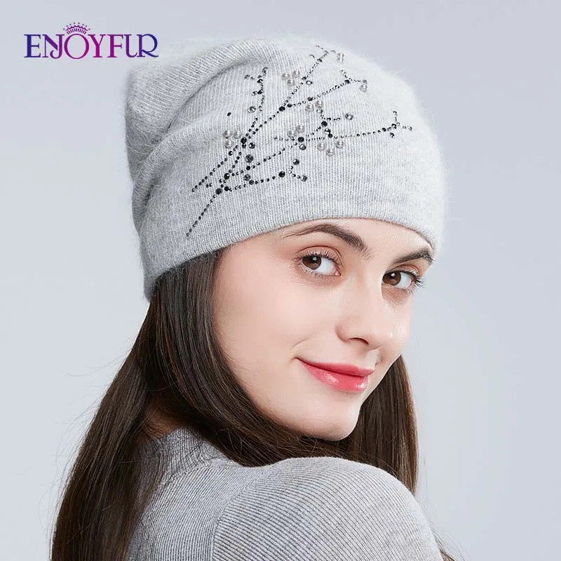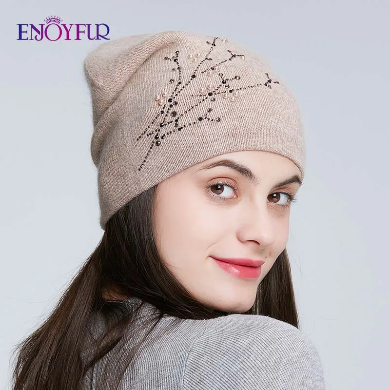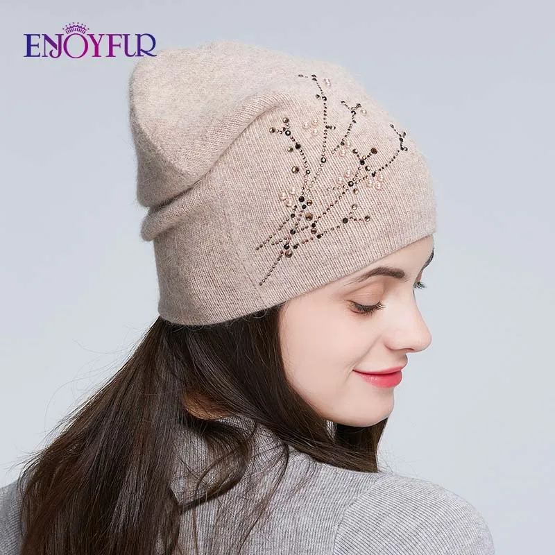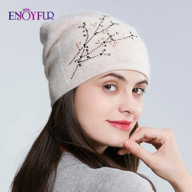 Special Offer Gorros de invierno tejidos con diamantes de imitación de piel ENJOYFUR para mujeres gorros gruesos de otoño para mujeres Discount 40% Today!