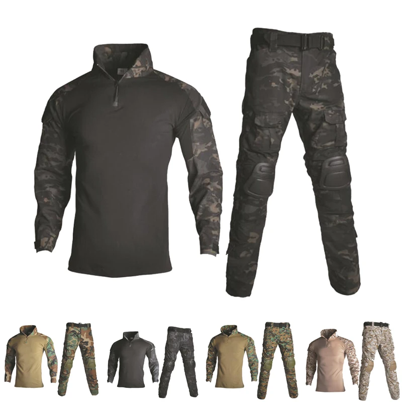 Special Offer Uniforme militar Camisa + Pantalones con rodilla codos almohadillas Aire Libre Airsoft Paintball táctico traje Ghillie de camuflaje ropa de caza Discount 43% Today!