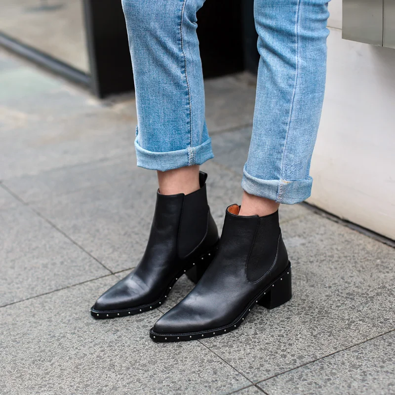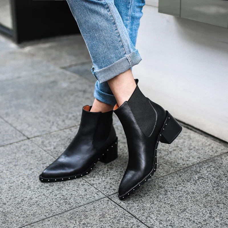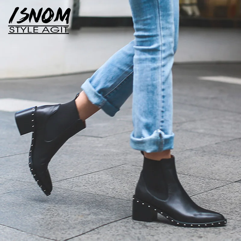 Special Offer 2020 último remache Chelsea Boot mujeres botines de invierno Botines de cuero genuino de Mujer Zapatos de tacón alto cuadrado calzado femenino Discount 45% Today!