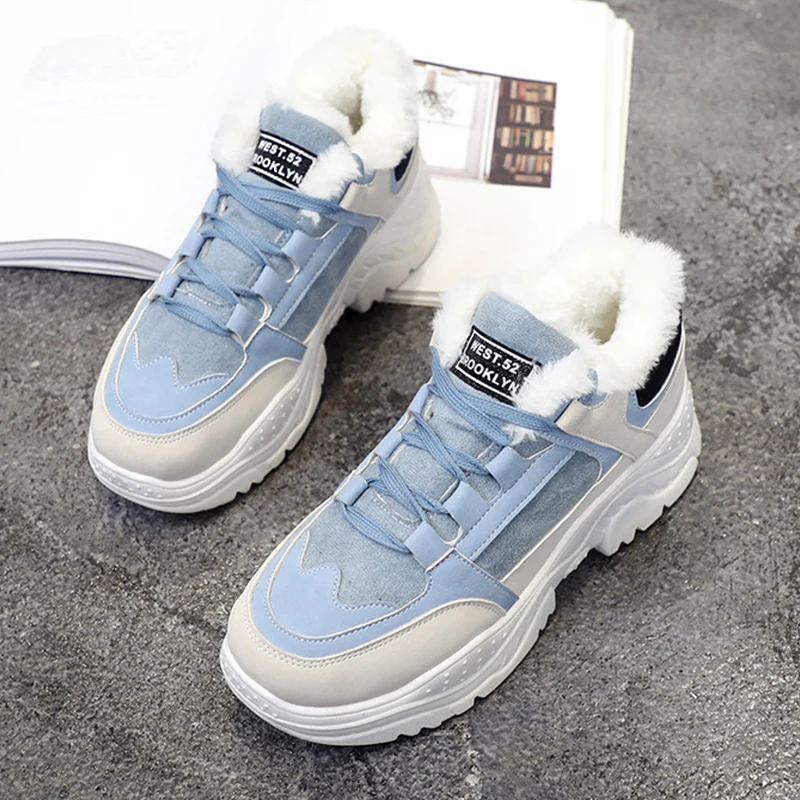 Special Offer Zapatillas de invierno Retro Para mujer Zapatillas gruesas de piel cálida plataforma gris Beige azul de felpa zapatos casuales mujer señoras Vintage zapatillas Discount 44% Today!