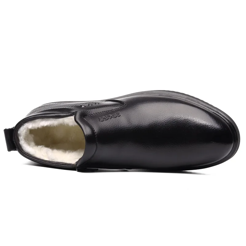 Special Offer 2019 nuevas botas de cuero de trabajo para hombres de moda botas de nieve de invierno frío cálido para hombres zapatos de cuero genuino botas de algodón de lana para hombres calzado Discount 45% Today!