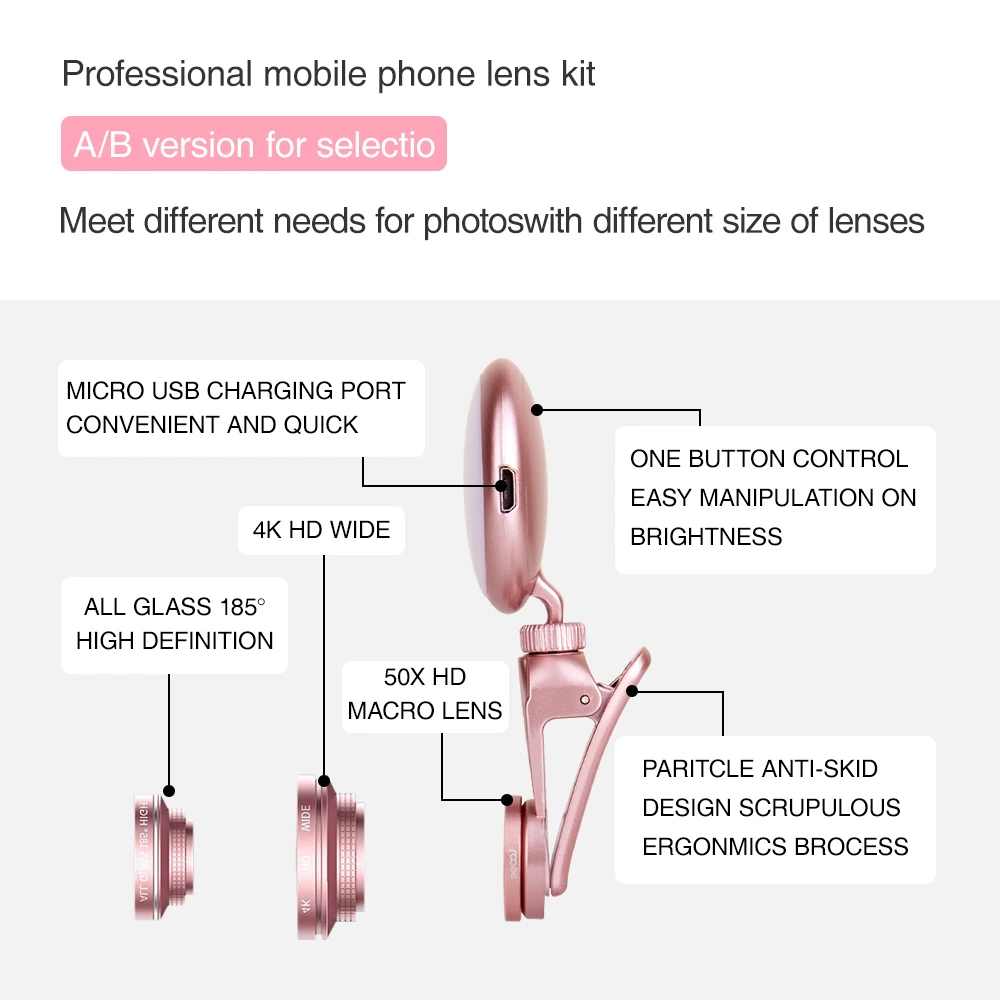 . (46% Off) Comprar Yizhestudio Selfie luz con Hd de ojo de pez gran angular Macro lente lámpara anillo de luz autofoto para iPhone X 8 tableta para teléfono inteligente 7 Plus Online Baratos.