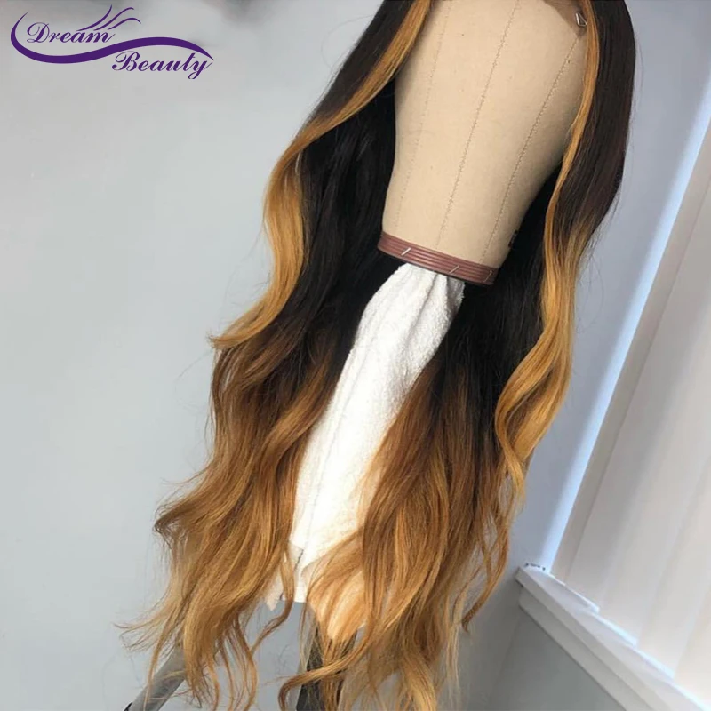 Special Offer Dream Beauty Ombre negro con miel Rubio destaca cabello humano 13X6 peluca Frontal de encaje brasileño Remy ondulado pelucas de cabello humano Discount 47% Today!