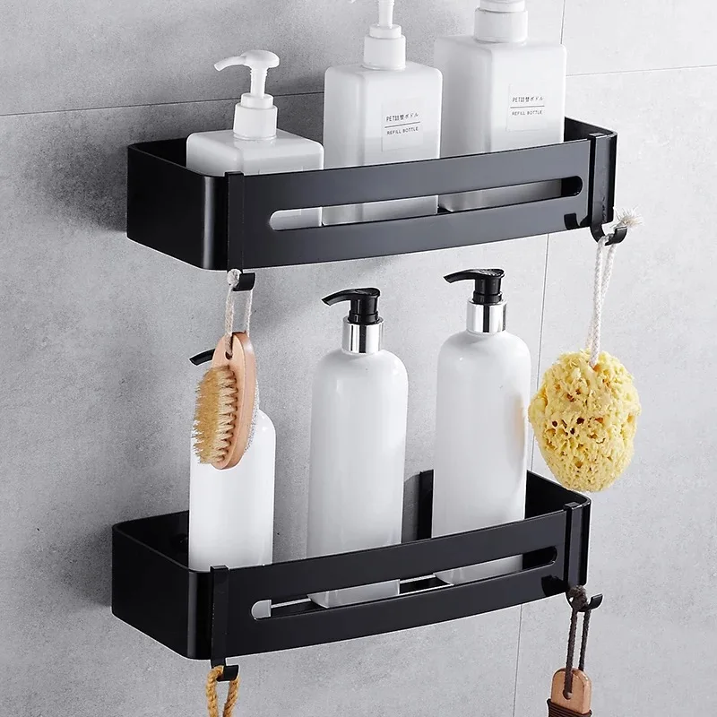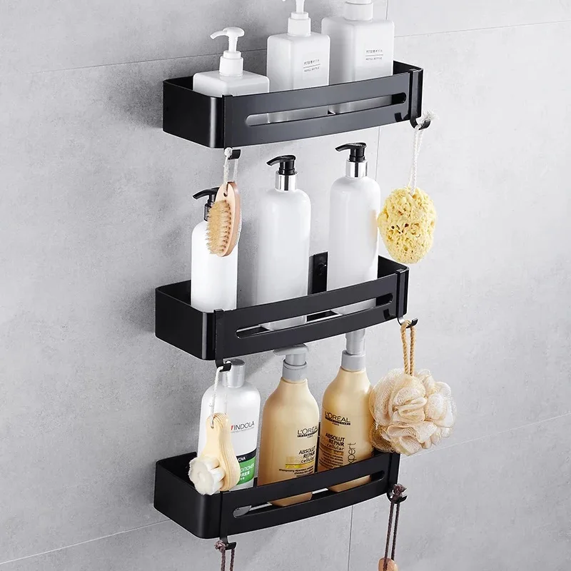 . (52% Off) Comprar Espacio libre de uñas de aluminio negro estante de baño estante cosmético con una sola palanca cesta de esquina de baño con gancho estante de baño estante C Online Baratos.