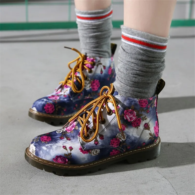 Special Offer Botas de otoño para mujer, botas de tobillo, tacones bajos, pisos florales, zapatos casuales, zapatos Oxfords para mujer, botines de motocicleta con cordones, de talla grande 40 Discount 55% Today!