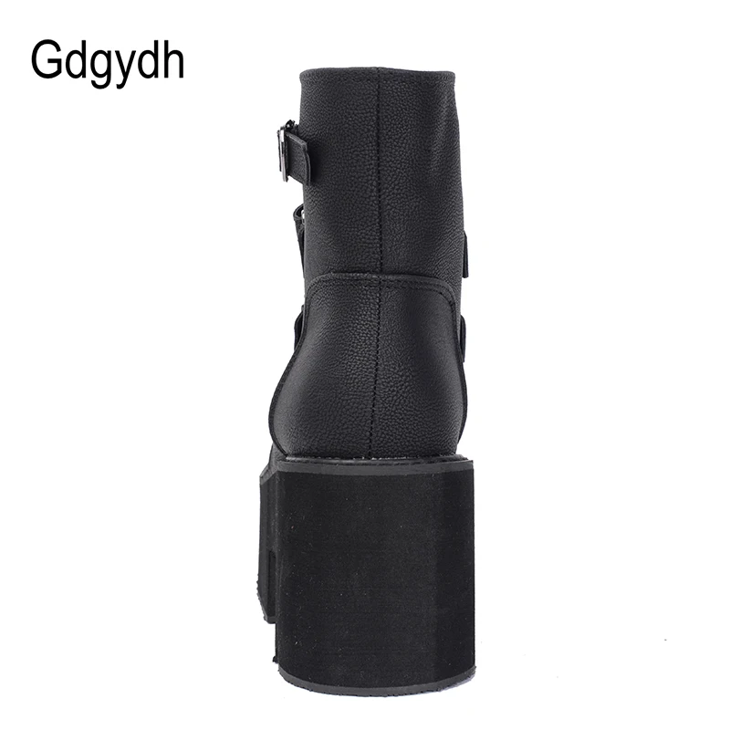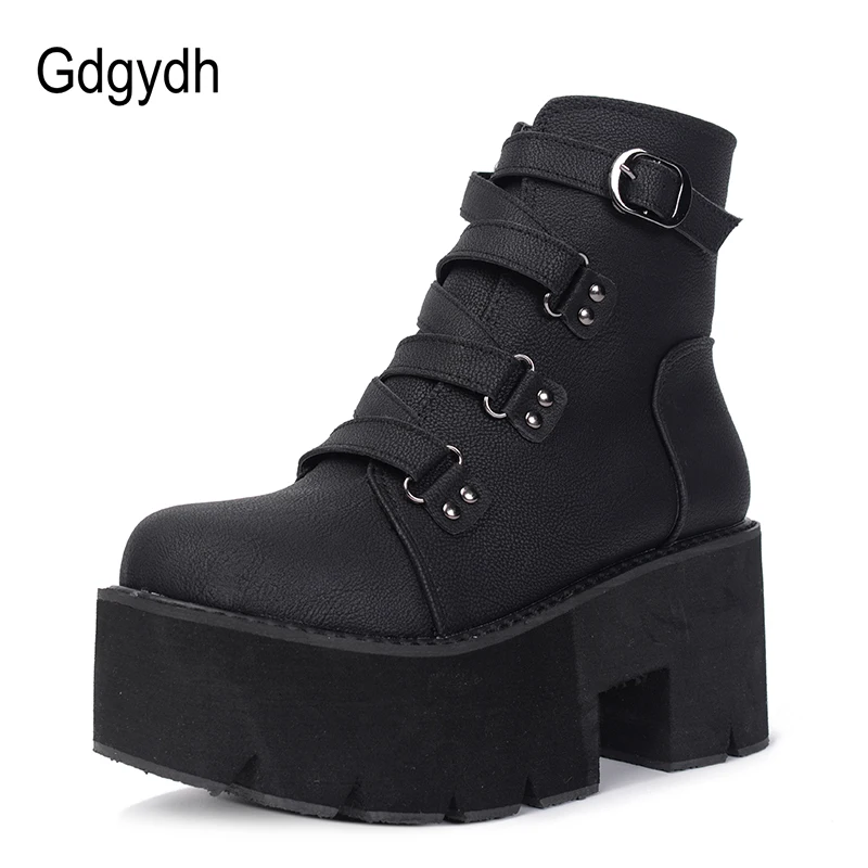 Special Offer Gdgydh botas de tobillo de primavera otoño botas de plataforma de mujer suela de goma hebilla zapatos de taco en PU de cuero negro zapatos de mujer cómodos Discount 40% Today!
