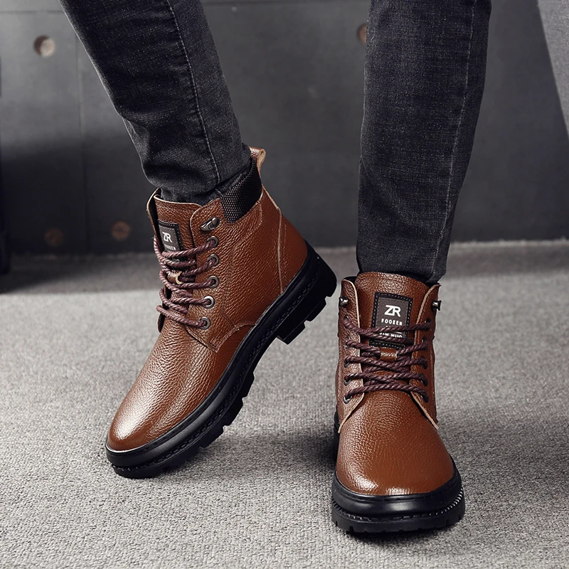 Special Offer OSCO botas impermeables de cuero genuino para Hombre Zapatos casuales para hombre Botas de tobillo de moda para hombres botas altas de invierno para hombre Discount 40% Today!
