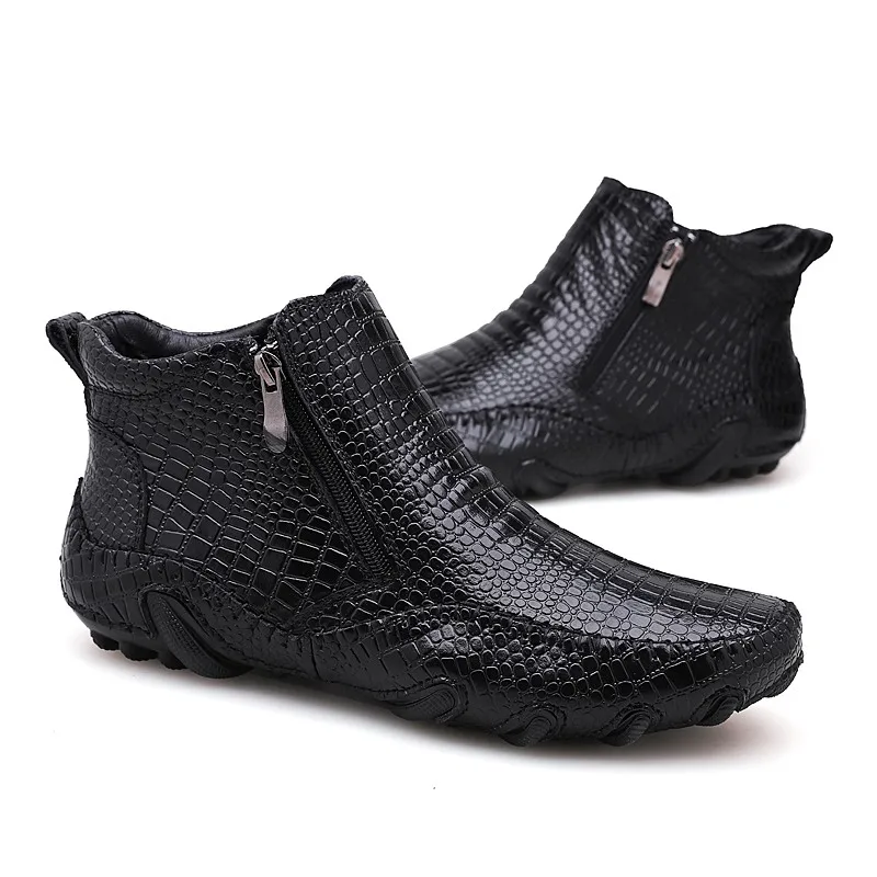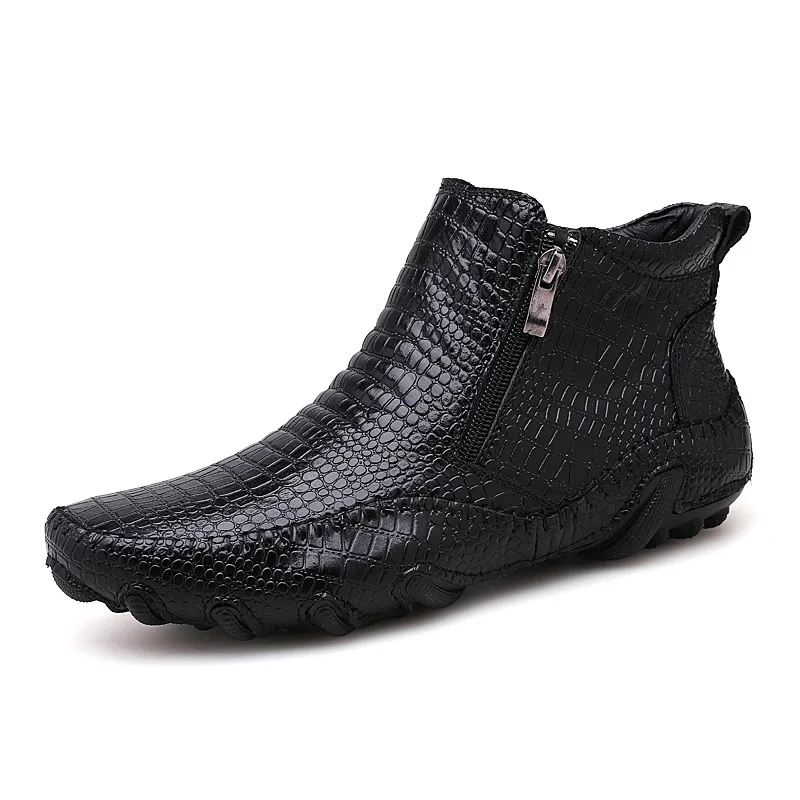 . (44% Off) Comprar Moda 2019 botas de cuero de calidad de gran oferta para hombre, zapatos casuales de invierno, calzado con cremallera, botas negras para hombre, talla grande 47 Online Baratos.