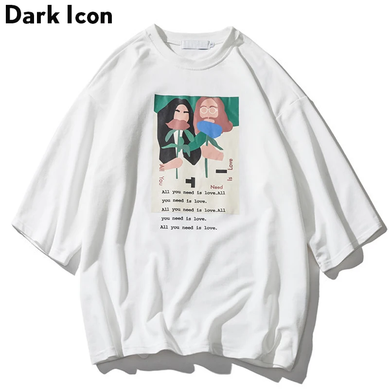 . (49% Off) Comprar Icono oscuro todo lo que necesitas es amor camiseta de estilo suelto para hombre manga 3 Quater 2019 primavera cuello redondo calle alta camiseta hombres camisetas Online Baratos.