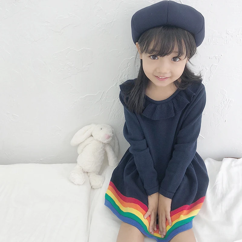 Special Offer 2 6Yrs bebé niñas vestido Arco Iris tejido suéter vestido bebé niños Arco Iris suéteres niños niñas Pullover dibujos animados niños ropa Discount 20% Today!