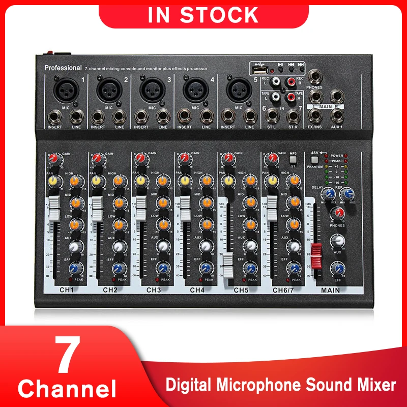 . (25% Off) Comprar LEORY 7 canales micrófono Digital mezclador de sonido consola 48V Phantom Power profesional Karaoke Audio mezclador amplificador con USB Online Baratos.