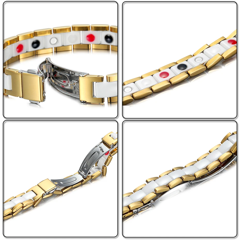 Special Offer Rainso elegantes pulseras y brazaletes blancos de cerámica para mujer holograma terapia magnética señora encanto joyas de germanio ORB 227 Discount 40% Today!