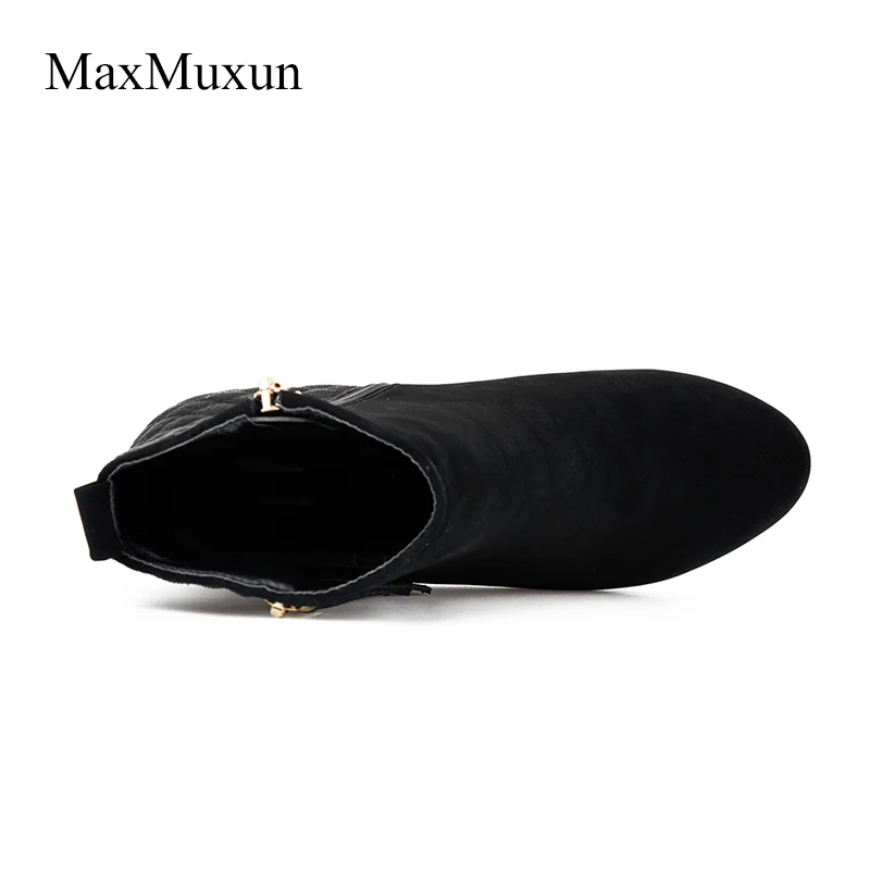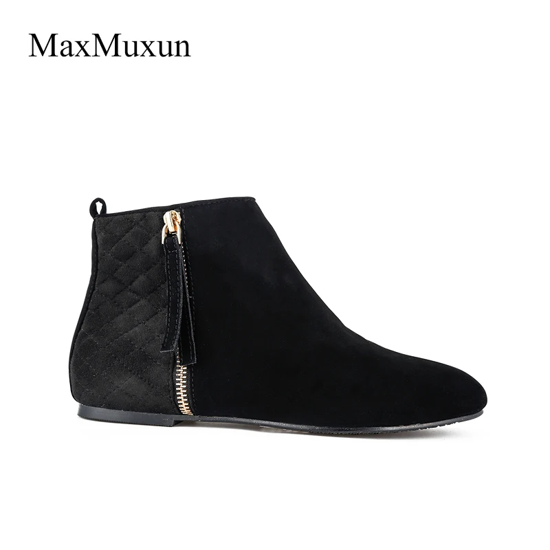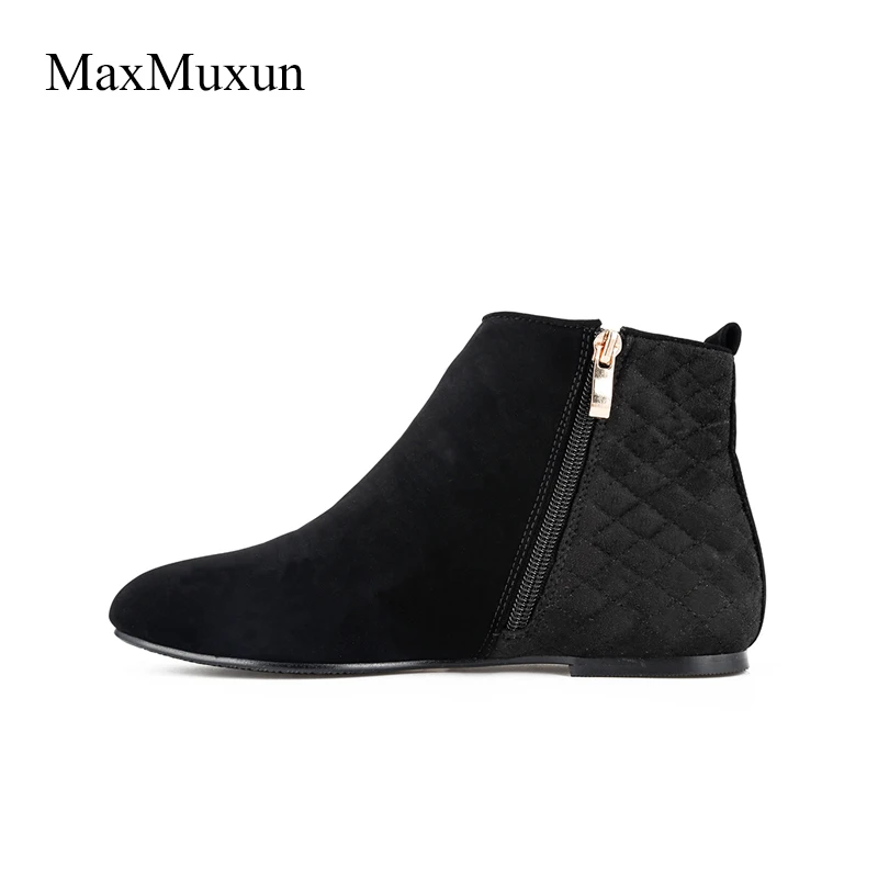 Special Offer MaxMuxun botines de mujer clásicos negros Botines de tacón plano para mujeres primavera moda Otoño señoras botas negras Causal botas cortas Discount 42% Today!