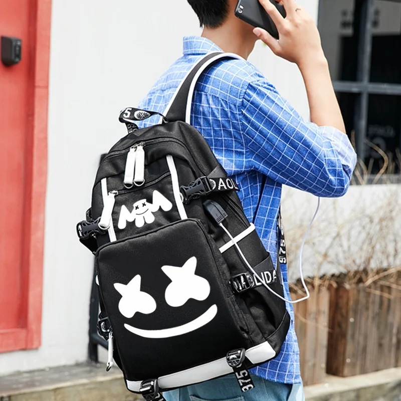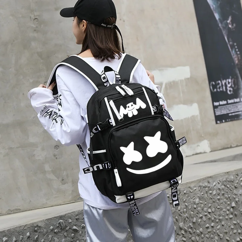 Special Offer Marshmello americano misterio mochila DJ USB multifunción mochila para los adolescentes de las mujeres de los hombres de escuela de luminosa bolsas Discount 44% Today!