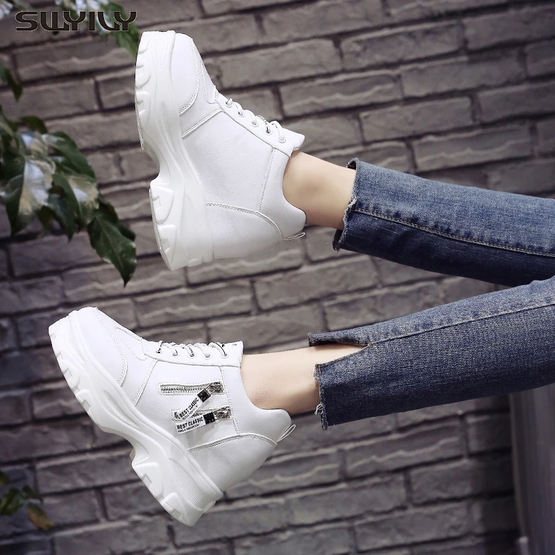 Special Offer Zapatos de plataforma SWYIVY para mujer 2019 nuevos zapatos de moda de papá zapatillas casuales de Primavera de cuña de tacón alto Beige blanco zapatillas con cremallera Discount 47% Today!