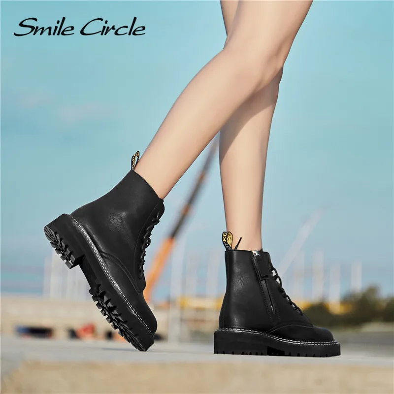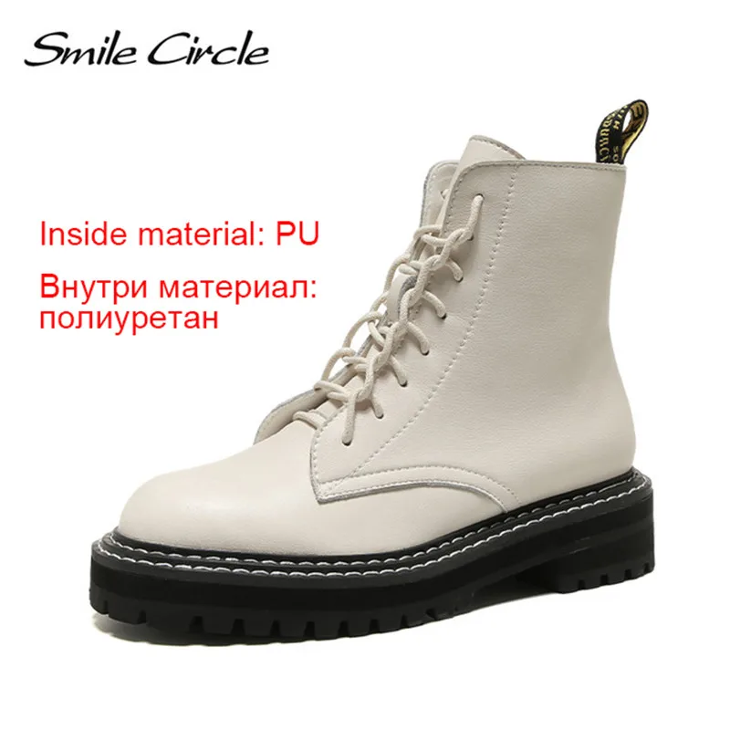 Special Offer Sonrisa círculo Botines mujer cuero genuino moda estilo británico plataforma zapatos mujer invierno botas cálidas de piel señoras botines Discount 50% Today!