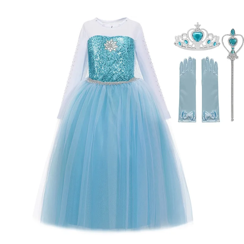 Special Offer Disfraz de Elsa para niñas MUABABY, princesa azul de la nieve, vestido con cola larga, fiesta de Navidad de Halloween, lentejuelas, fantasía Cosplay Discount 0% Today!