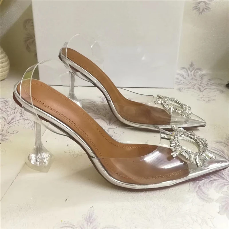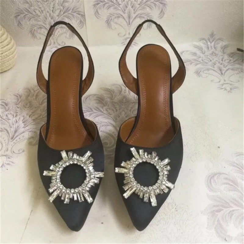 Special Offer Sandalias con hebilla redonda de cristal Individual, Sandalias Mujer 2019, tacón alto, Punta puntiaguda, lujosas Sandalias de tacón con correa trasera de satén para Mujer Discount 30% Today!