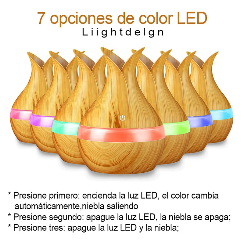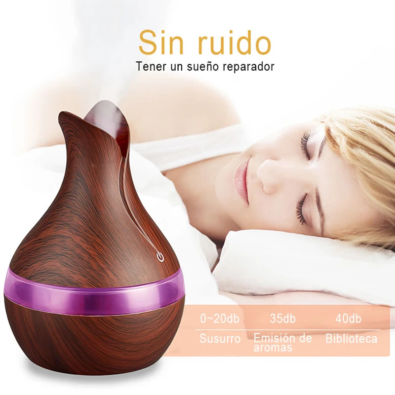 . (35% Off) Comprar KBAYBO 300ml USB humidificador de aire aromático difusor de aceite esencial fabricante de niebla fuerte grano de madera con 7 colores LED luz nocturna para el hogar Online Baratos.