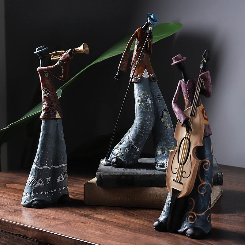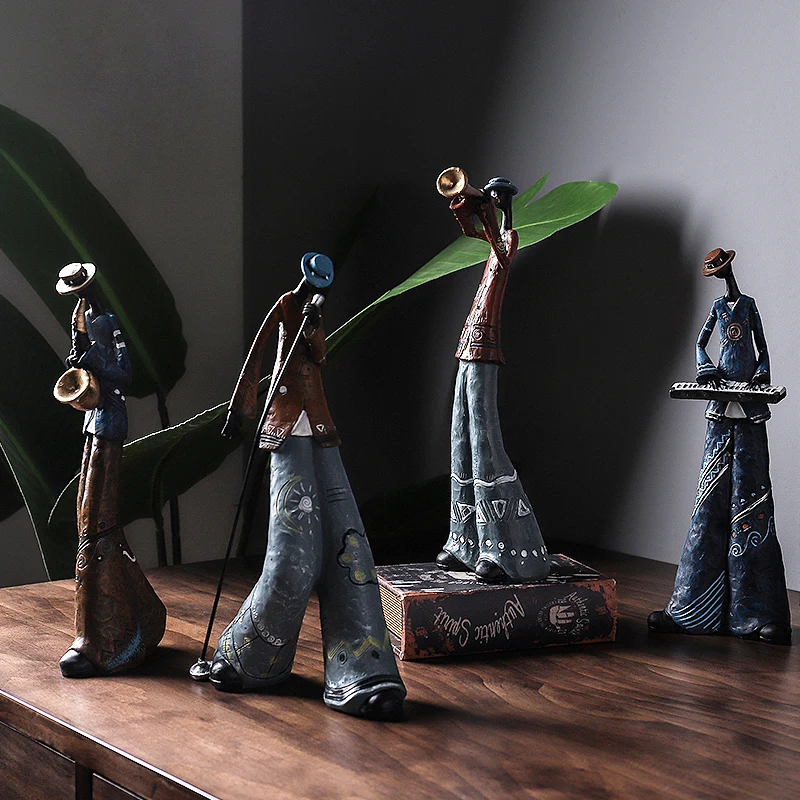 Special Offer Figura creativa arte música banda de Rock estatua de resina diversión Retro música decoración del hogar saxofón guitarra cantante escultura Discount 0% Today!