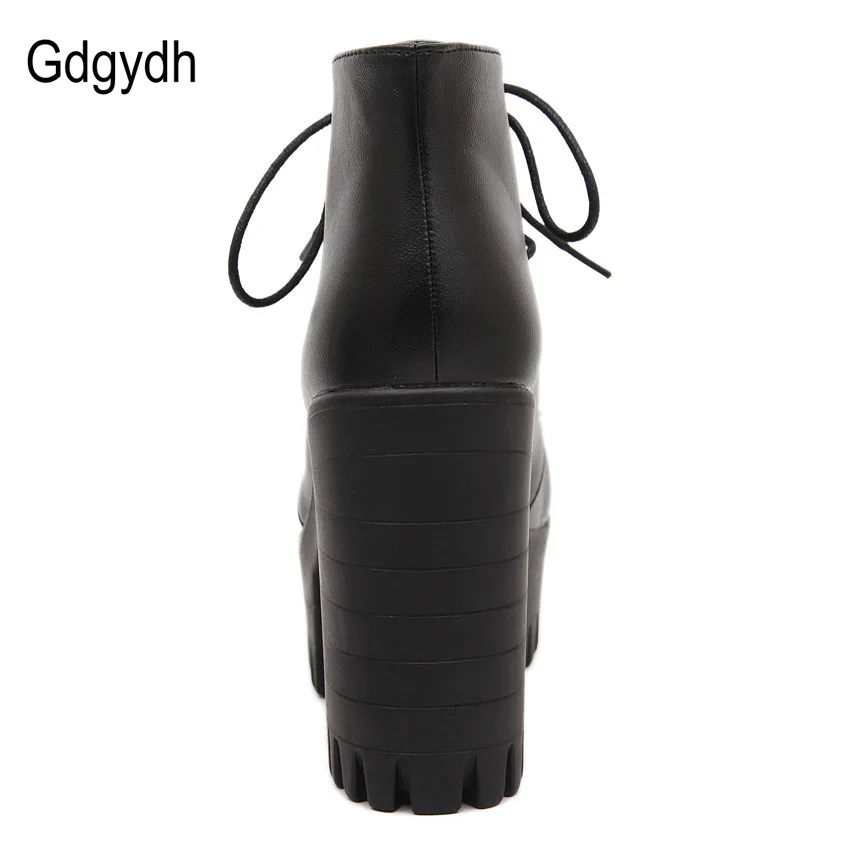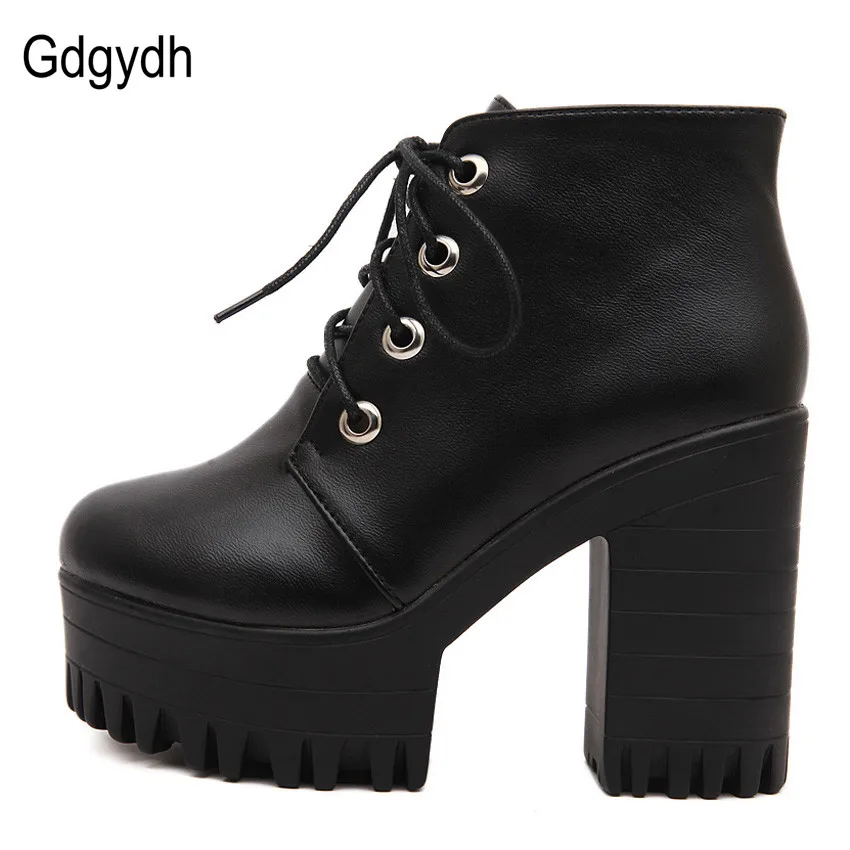 Special Offer Diseñador de marca Gdgydh 2019 nuevos zapatos de mujer de primavera y otoño botas de tacón alto negro con plataforma de cordones botas de tobillo de tacón grueso Discount 15% Today!