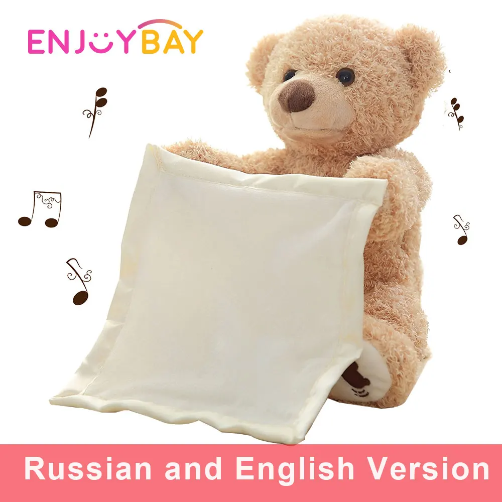 Special Offer Enjoybay ruso Inglés echa un vistazo a Boo oso de peluche que habla jugar a ocultar buscar juguetes de peluche lindo juguete de dibujos de animales juguete de música eléctrica Discount 20% Today!