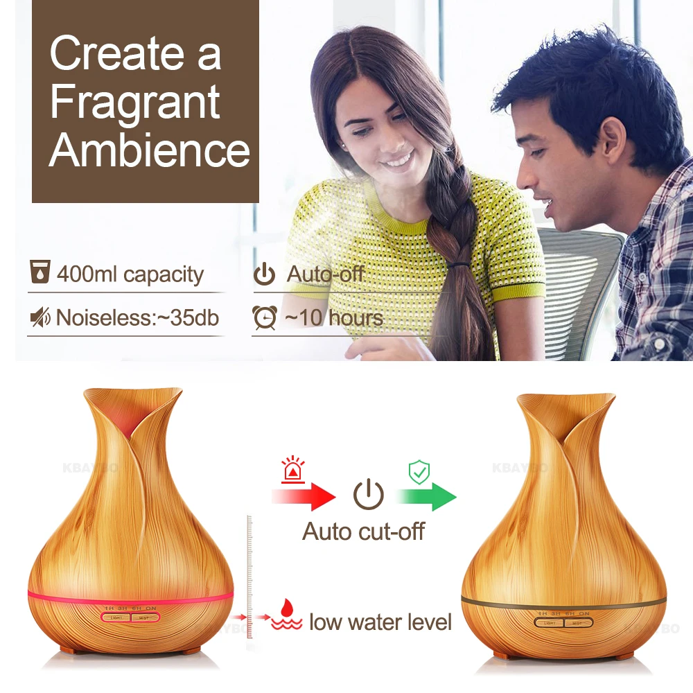 Special Offer KBAYBO 400 ml Aroma difusor de aceite esencial humidificador de aire ultrasónico con grano de madera eléctrica LED aroma difusor para el hogar Discount 29% Today!