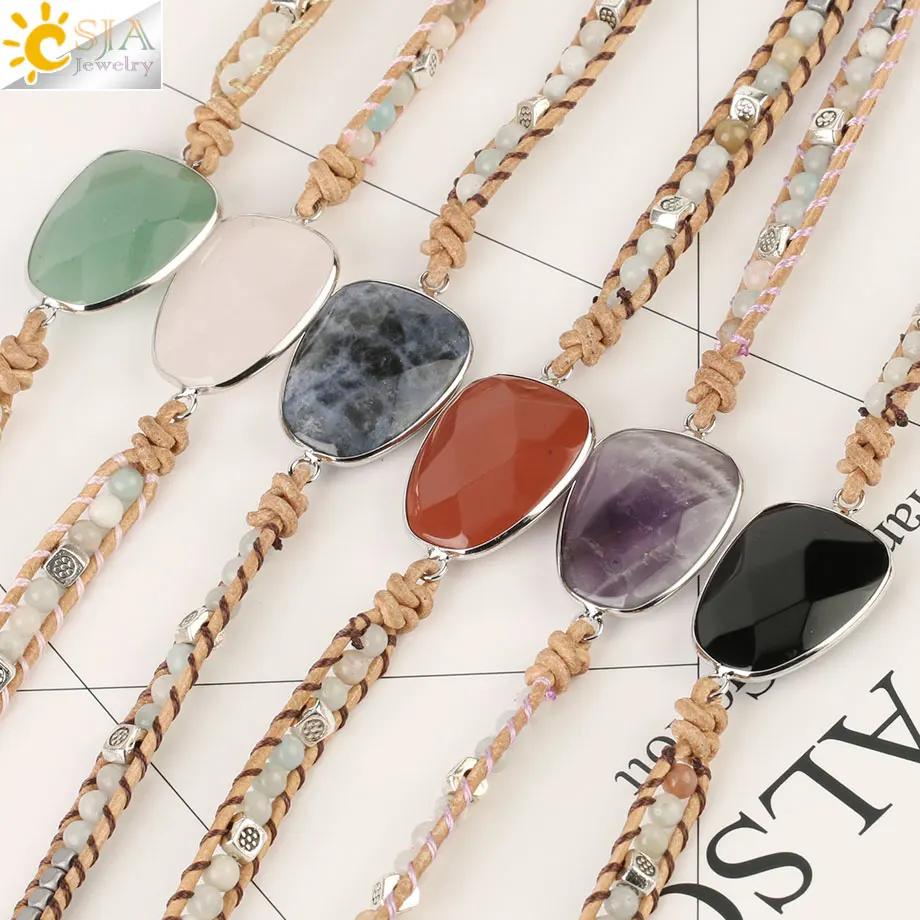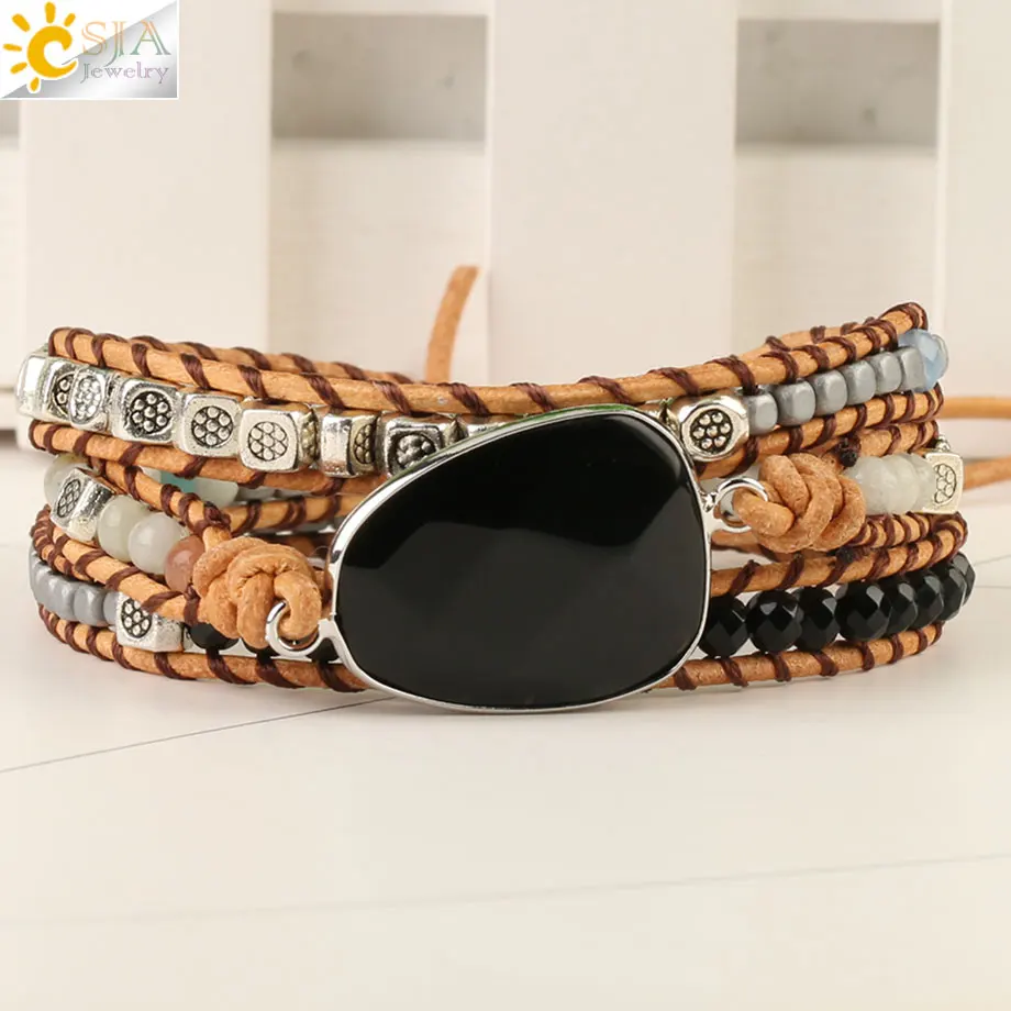 Special Offer CSJA Mixed Natural Stones pulseras de cuero para mujer bohemio multicapa cuentas pulsera hecha a mano tejido joyería S473 Discount 30% Today!