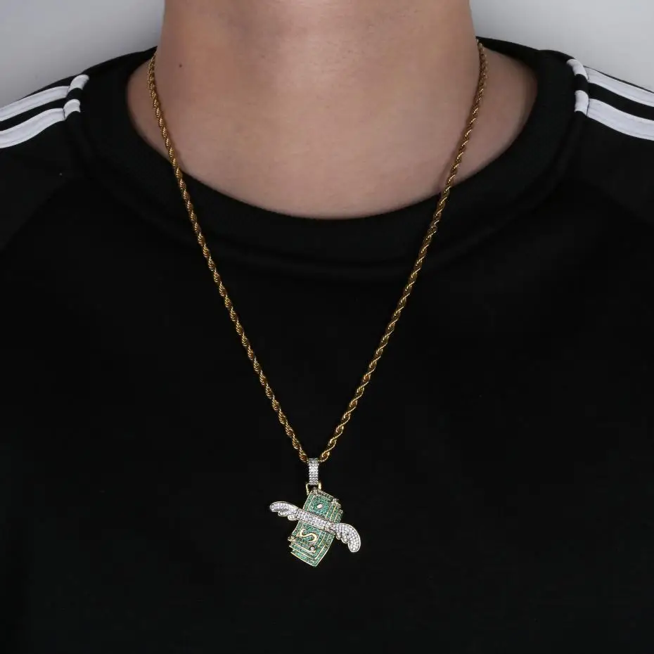 Special Offer Nuevo COLLAR COLGANTE macizo en efectivo volador helado para hombre personalizado Hip Hop Color plata oro cadenas de dijes joyería regalos Discount 30% Today!